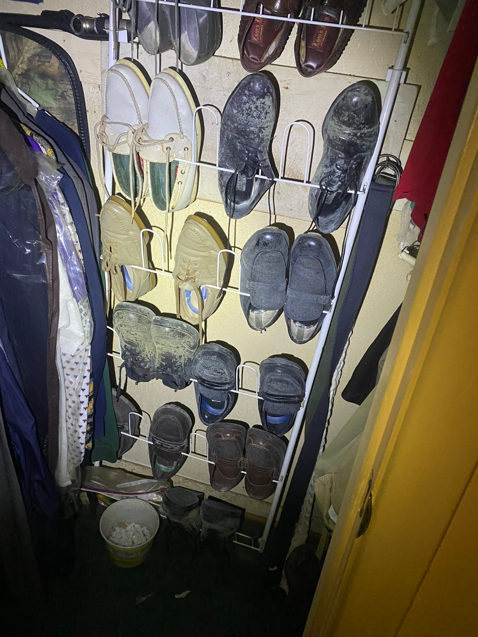 The homeowner had discovered extensive mold growth that had taken hold in a closet area, spreading across walls, door frames, and even the threshold. The white, fuzzy growth covered nearly every surface – a clear sign that moisture had been present for an extended period, creating the perfect environment for mold colonization.
